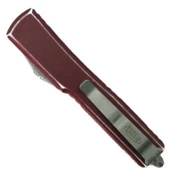 Microtech Distressed Red UTX-70 OTF Auto Knife, Apocalyptic Blade