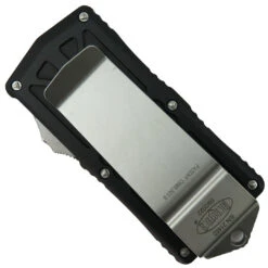 Microtech Black Exocet OTF Auto Knife, Fully Serrated Dagger Blade