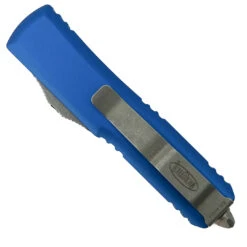 Microtech Blue UTX-85 OTF Auto Knife, Apocalyptic Stonewash Blade