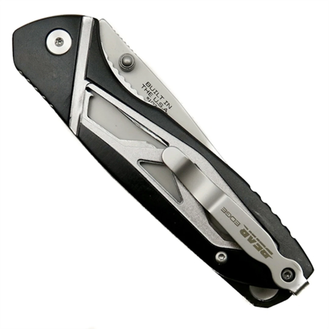 Bear Edge, a division of Bear & Son Cutlery, is making its debut this year–offering high quality products that utilize mostly imported parts that are proudly assembled in the USA. This flipper features a liner lock designed model that has been inset into the handle which helps reduce the overall weight of the knife. Additionally, the stainless steel blade is deployed with the ambidextrous spine flipper function or via the dual thumb studs and the fluid action is thanks in part to the ball bearing washers it rides on. This model features a black and silver skeletonized aluminum handle, stainless steel liners, a drop point style blade in a bead blast finish and the reversible pocket clip is designed for tip up carry only but is eligible for a left or right hand carry option.