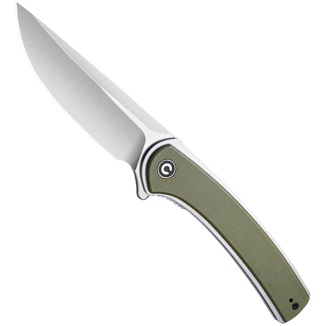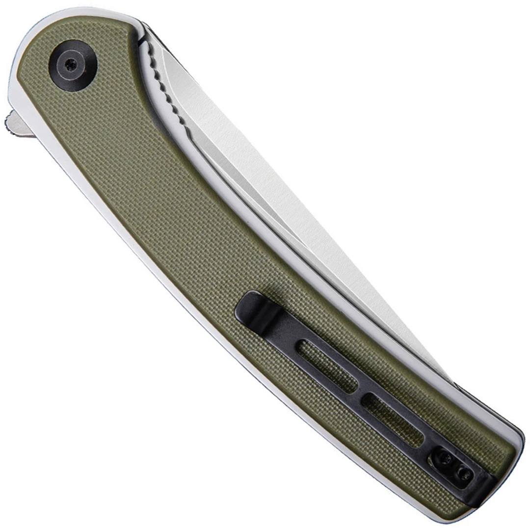 The CIVIVI Asitucs is a simple EDC flipper. This model features green G-10 handle scales. The D2 hollow ground blade opens fast and smooth, ready for action when you are. The deep carry pocket clip allows for discreet carry.