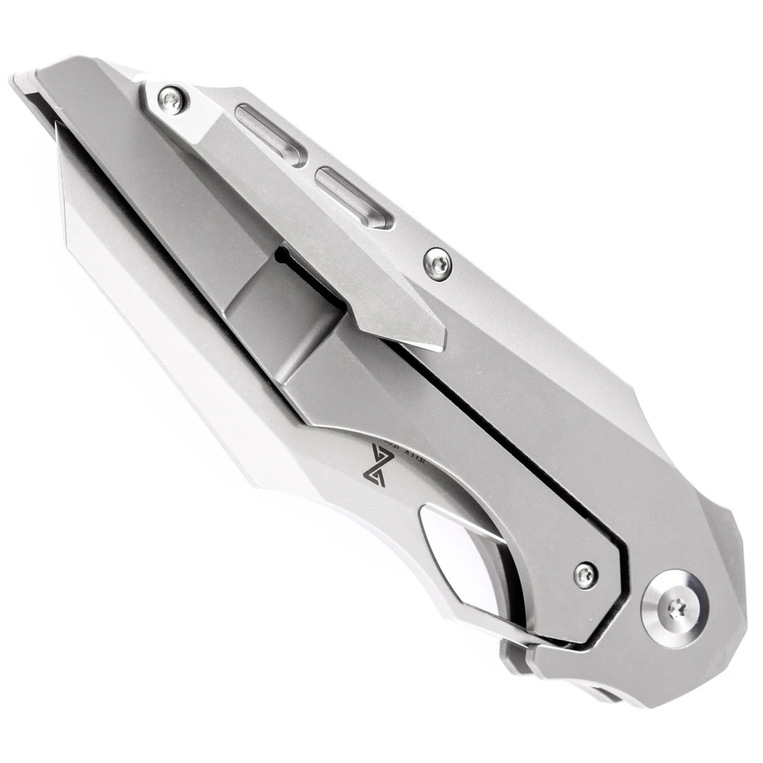 The Kansept Knives Genesis is designed to be a go anywhere, effective tool. This knife features a wharncliffe blade made of tough CPM-S35VN steel and a titanium handle.Â