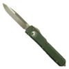This Microtech UTX-70 out the front automatic features a black anodized aircraft-grade aluminum handle paired up with a bronze finished M390 standard blade.