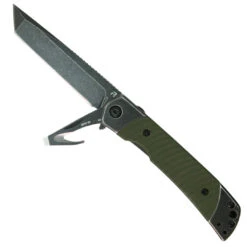The REVO Duo Green Tanto Frame Lock Knife is a handy, lightweight knife. The rescue hook/seatbelt cutter with a slotted drive gives this knife double the abilities while retaining the traditional knife form. The tanto blade of this knife is made of 9Cr18MoV stainless steel with a black stonewash finish. This steel provides durability and excellent corrosion resistance. The milled G10 handle scales are comfortable, providing a solid grip. This knife boasts a sleek black backspacer. The main blade opens smoothly with a flipper tab, while the rescue hook tool opens by nail nick. This capable knife is a fantastic everyday carry.