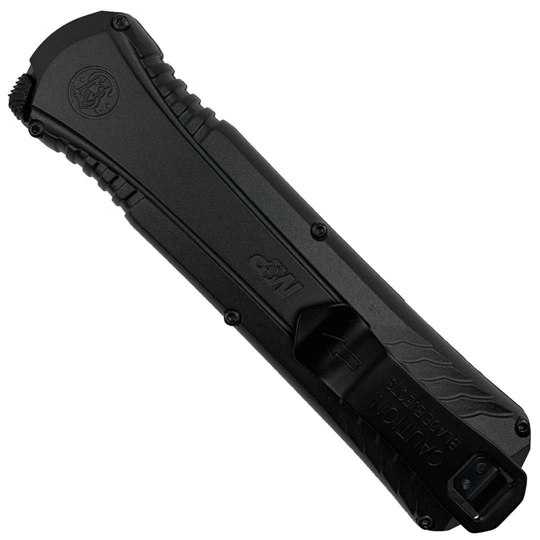 The Smith & Wesson OTF knives are both spring-assisted and single-action which means they deploy with the push of the slide switch but manually retracted. Additionally, the wide-body handle design offers an ergonomic feel especially since the trigger is on the broad side of the handle and every OTF includes a safety arm found near the base.