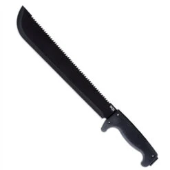 The SOG SOGfari machete is the perfect tool for your outdoor needs. Great to clear brush, blaze trails, chop wood, make shelters, prepare food, hunt as well as protect. This 13″ machete sports a drop point shaped blade with a sawback spine for extra utility. The handle is built for extended use and has a lanyard hole for more security. At the base of the handle, the tang is extended for heavy banging, pounding and scraping that needs to be done. This is a go to tool for wide open spaces.